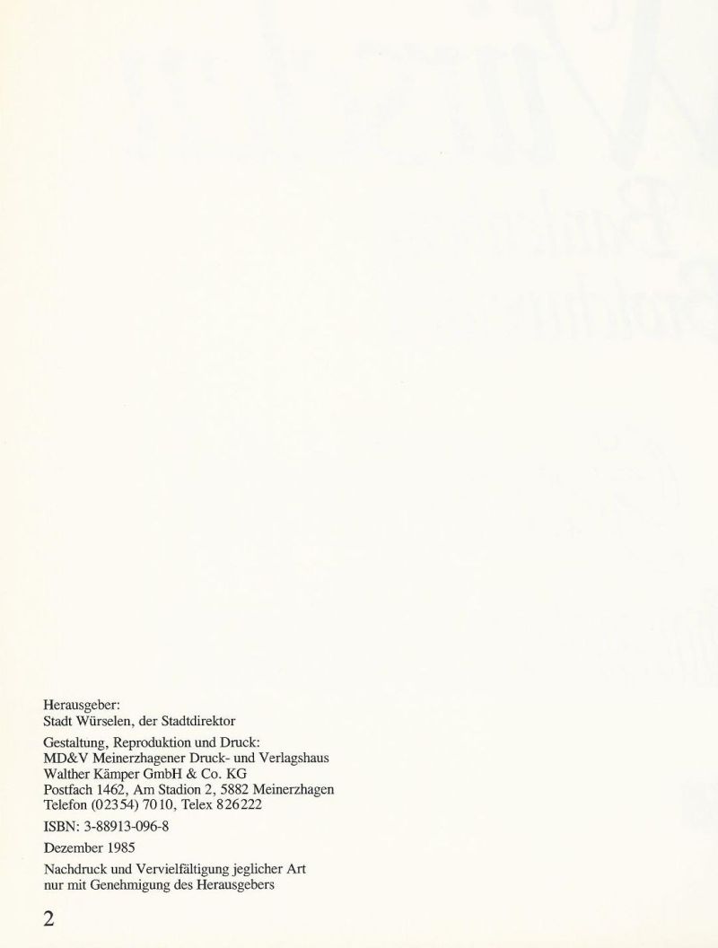 Die Verwertungsrechte für das Werk liegen bei der Stadt Würselen als Herausgeber.